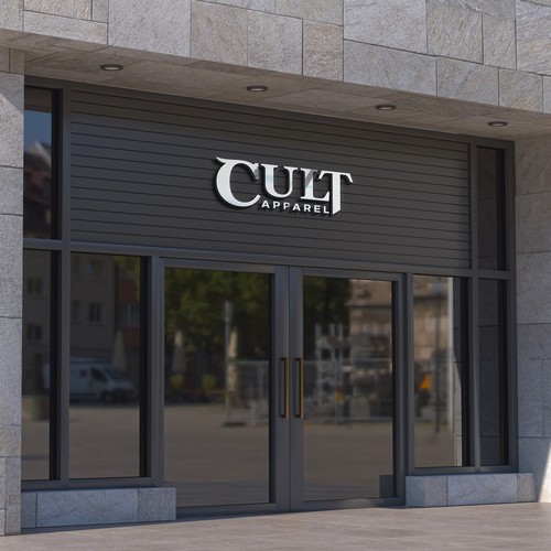 We are launching a new streetwear brand under CULT . need a logo that says cult on top and apparel at the bottom. focus